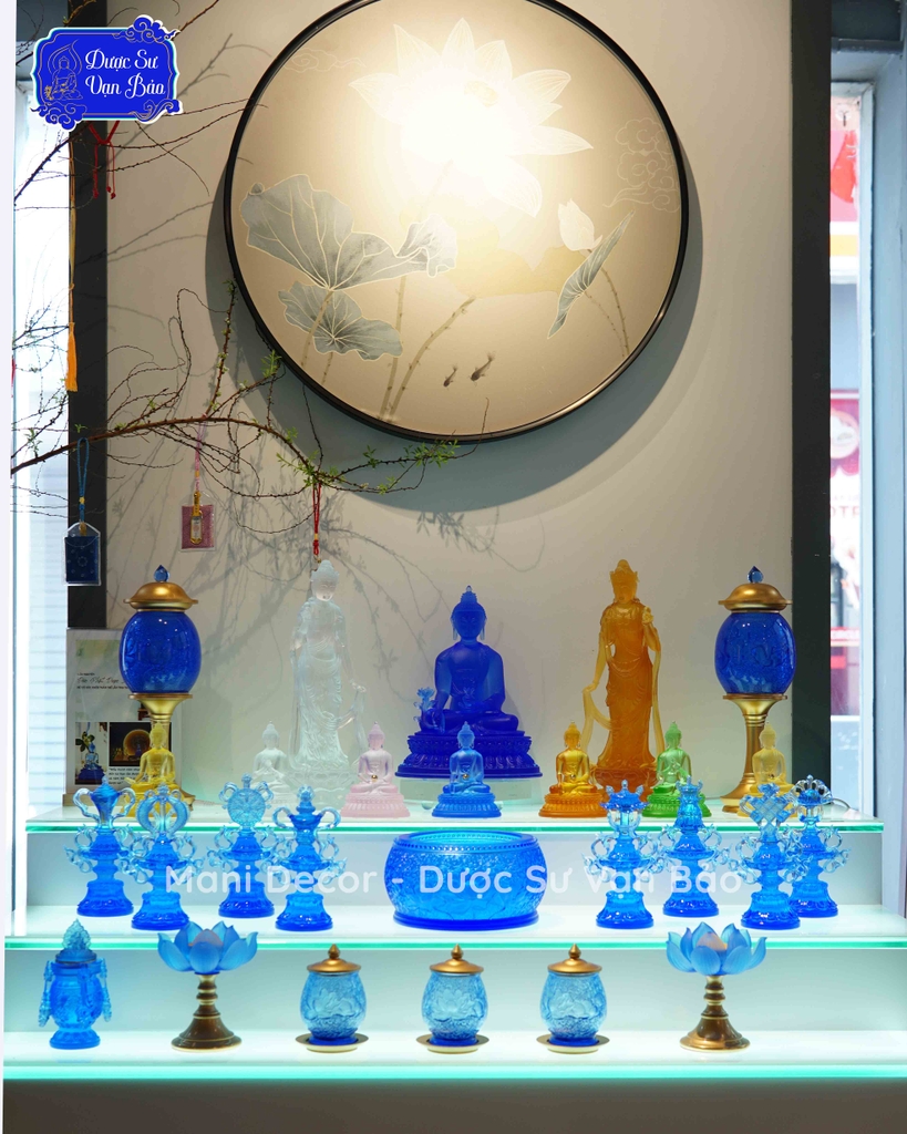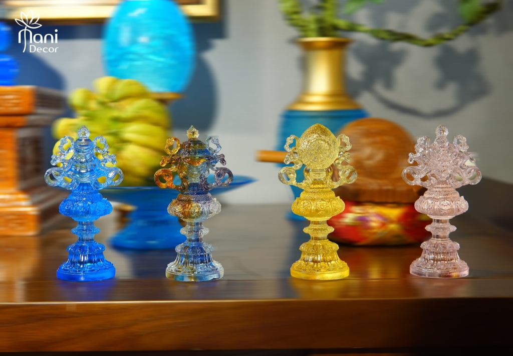 Nhất là các vật phẩm cúng dường hoàn toàn bằng lưu ly. Mani Decor (Dược SƯ Vạn Bảo) xin giới thiệu đến các bạn Bộ Bát bảo cát tường - 8 biểu tượng cát tường.