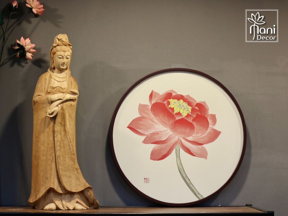 Minh văn trên lưng và bệ tượng cho biết tượng được tạc vào niên hiệu Đại Hòa 7 (1449) đời Vua Lê Nhân Tông. Tượng cao 51cm, trên tu di tòa cao 37cm. Kích thước nhỏ nhắn này tương đối phù hợp với các loại tượng quan hầu lăng mộ thời này. Tượng ngồi theo thế kiết già, hai tay đặt trên đầu gối, một tay cầm một chén nước, một tay cầm nhành dương liễu nhưng đã bị gãy.
