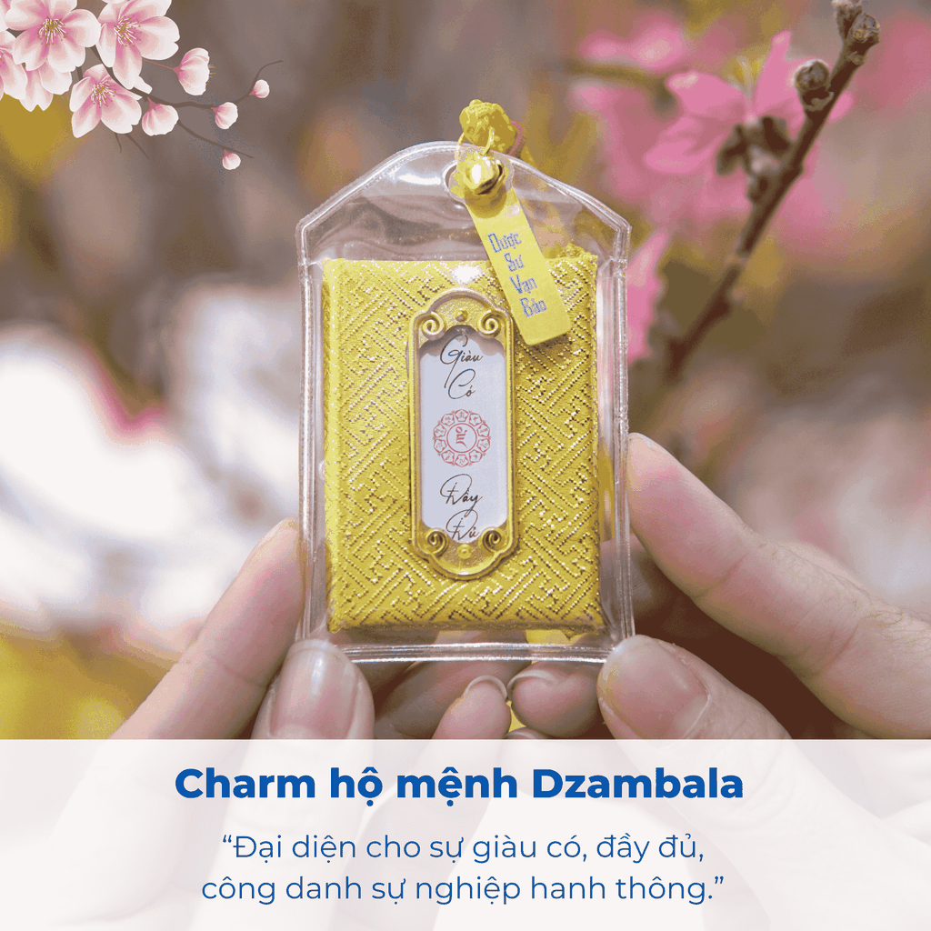 Charm Dzambala (Hoàng Thần Tài): Khai cung tài lộc, rước tiền vô như nước, công danh sự nghiệp thăng tiến vượt bậc.