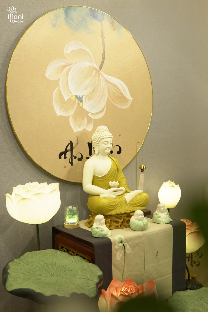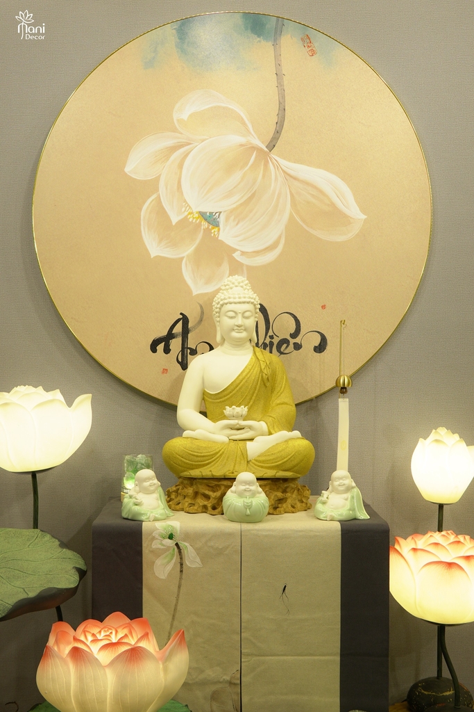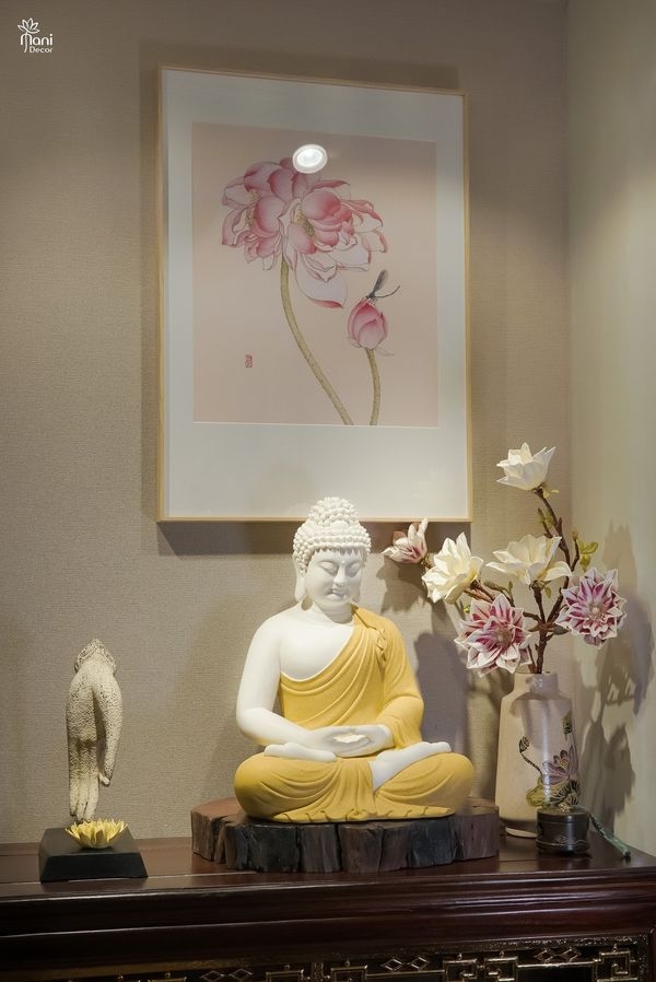 Đi cùng Ngài là sự tinh khiết của bình hoa ngọc lan, tranh hoa sen.