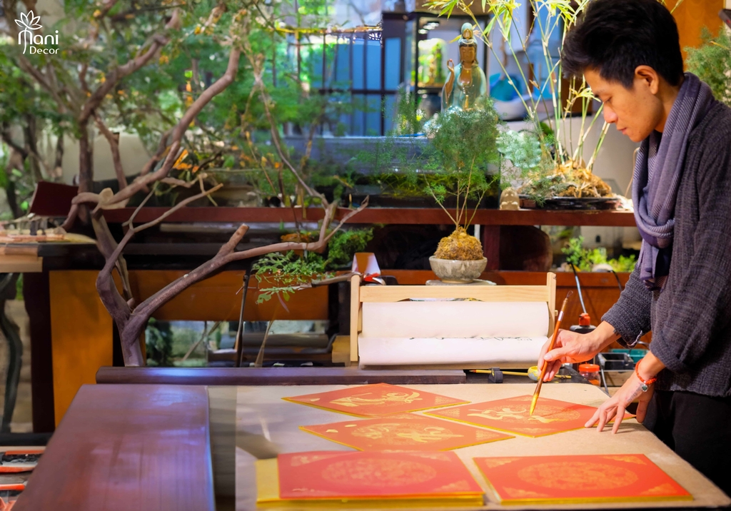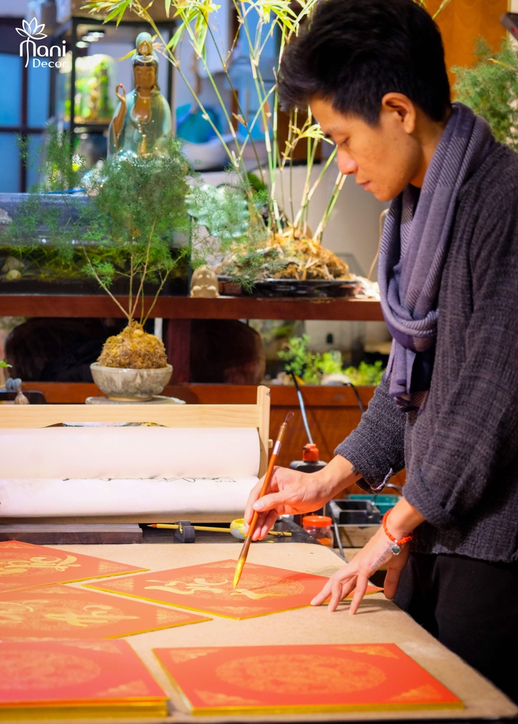 Đặc biệt, năm nay, Mani Decor gửi tới bạn 2 Set lá lộc thư pháp được viết tay bởi Họa sĩ Hải Nam: Set "Tài Lộc" và "Thịnh Vượng".