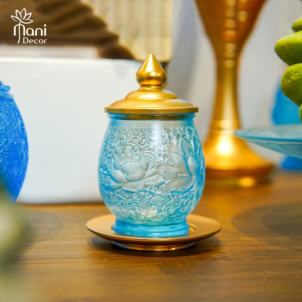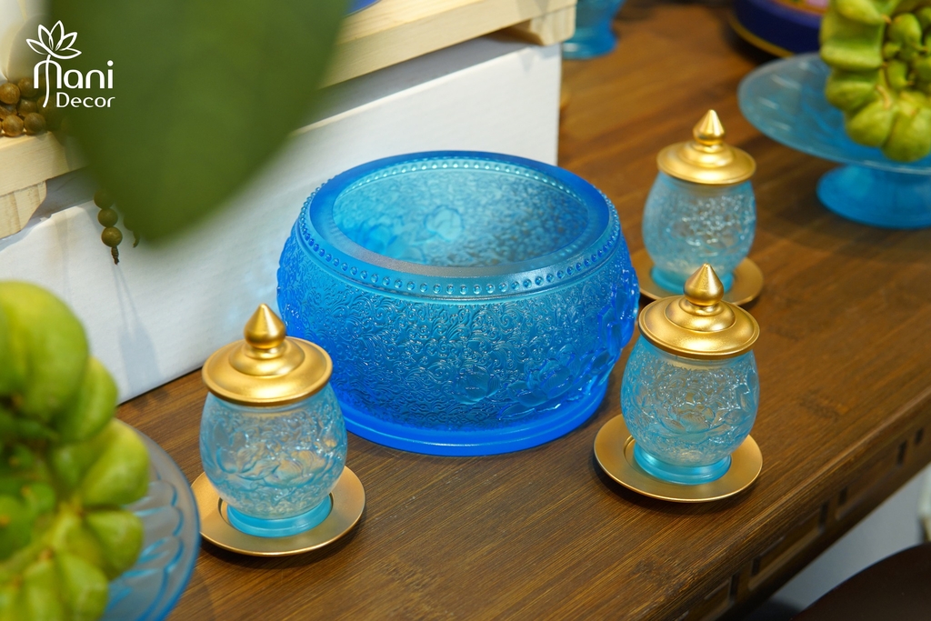 - Bình hoa, đĩa cúng dường lưu ly: Cúng dường hoa, quả tới Chư Phật