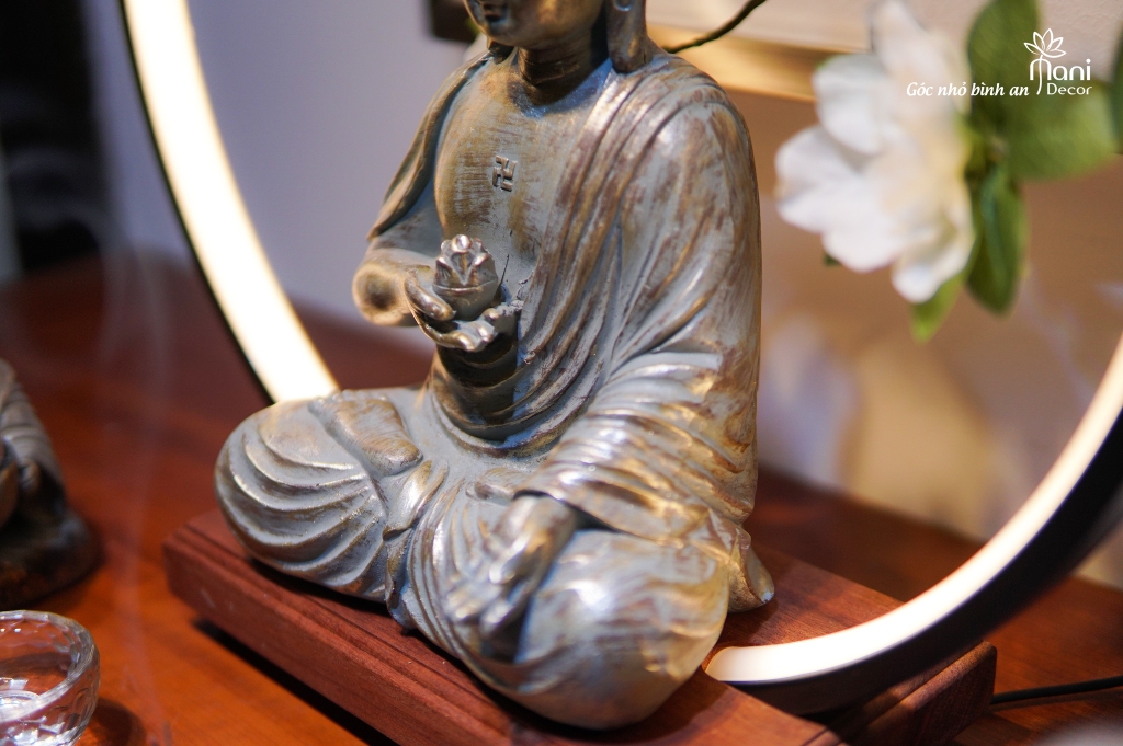 1. Tượng Phật A Di Đà nâng sen: Diện Phật từ bi, tay phải nâng sen, tay trái thả lỏng đón nhận mọi chúng sinh về cõi Ngài