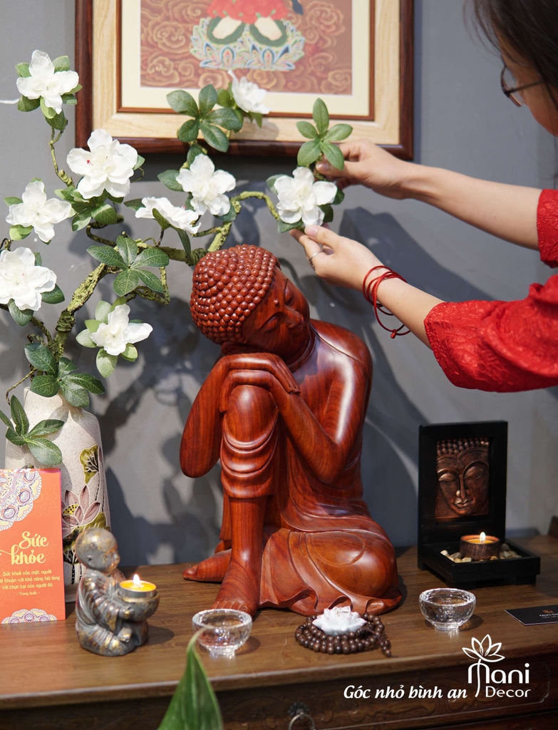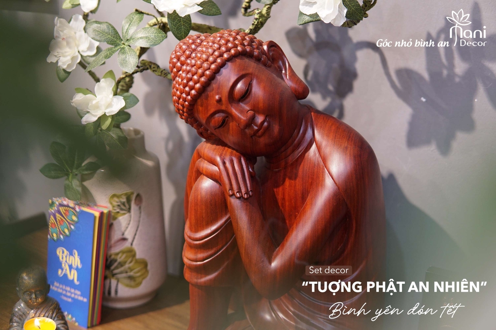 Với cảm hứng đó, Mani đã thiết kế một tác phẩm dành riêng cho những người tìm kiếm bình an - Tượng An Nhiên Gỗ